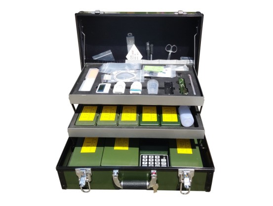 本箱可檢測一般理化指標(biāo)、常見毒物指標(biāo)和軍用毒劑、微生物、電離輻射指標(biāo)共33項。主要采用試紙、試劑管、檢測管等簡易劑型,與箱內(nèi)配備的手持式水質(zhì)檢測儀器(型號:F20+)定量檢測方式相結(jié)合使用。單元式組裝,一次性使用,進行定量、半定量或定性檢測,便于單獨攜帶。F20+儀器其靈敏度符合野戰(zhàn)飲水衛(wèi)生要求,操作簡易快速,試劑穩(wěn)定,可儲存3年。配有MicroUSB、Type-C接口,手機上可觀看的操作使用演示參考U盤等。F20+手持式水質(zhì)檢測儀,為四通道樣品檢測儀器,可定位水源樣點GPS/BD經(jīng)緯度信息,儲存歷史檢測記錄約2400條,也可鏈接上位機進行聯(lián)機操作,儲存、發(fā)送數(shù)據(jù)(遠(yuǎn)程實時無線傳輸數(shù)據(jù)需4G/北斗終端模塊支持,選配)。